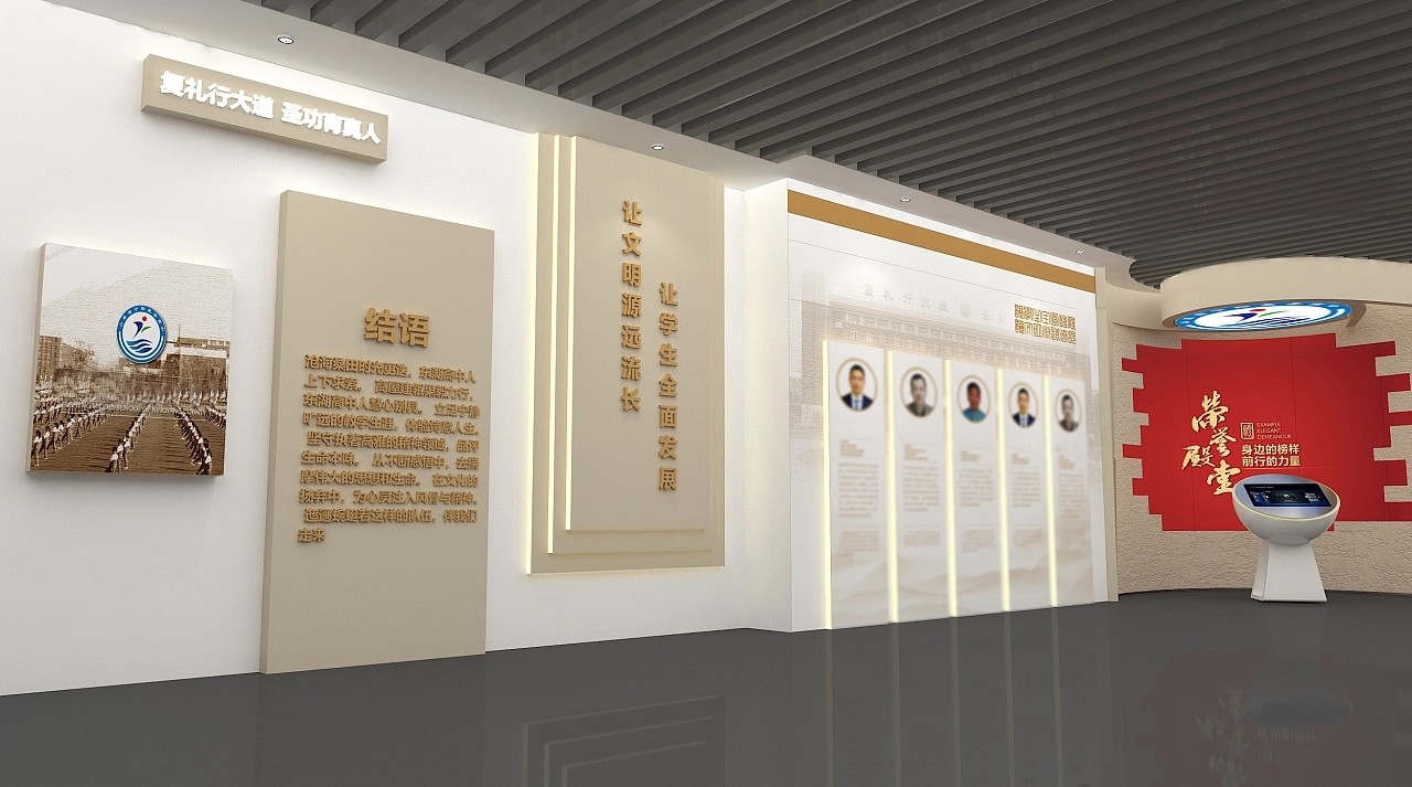 校史館的空間布局應(yīng)該有條不紊,使游客在參觀過程中能夠自然而然地了解學(xué)校的發(fā)展歷程??梢园凑諘r(shí)間順序或主題進(jìn)行布局,通過合理的展示區(qū)域劃分和路徑規(guī)劃,使參觀者能夠有序地瀏覽。