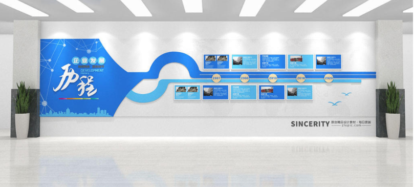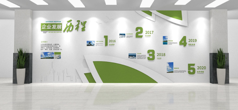企業(yè)發(fā)展歷程文化墻設(shè)計的主要意義,一方面可以向參觀者展示公司的實力,另一方面提升公司品牌形象的同時還可以增加團隊的凝聚力。一面好的歷史文化墻設(shè)計不僅僅是展示作用,還可以給公司帶來很好的業(yè)績提升。所謂歷史發(fā)展文化墻不只是把公司開業(yè)多少年,一共有多少人,更重要的是通過這面文化墻來記錄我們的一些大事記,小公司如果歷史沒有那么久遠可以一年寫三個大事記,大公司發(fā)展歷史久遠,一年寫一個最重要的事情就可以,當(dāng)然如果您的墻面夠大,您可以隨心設(shè)計。